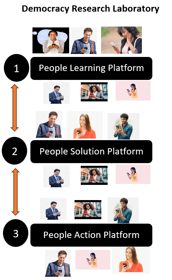 People Action Platform: This platform prompts all people to articulate actions to implement the solutions proposed in the second platform to make democracy a better democracy. This platform yields action plan which is acceptable to all and which motivates all to act on.